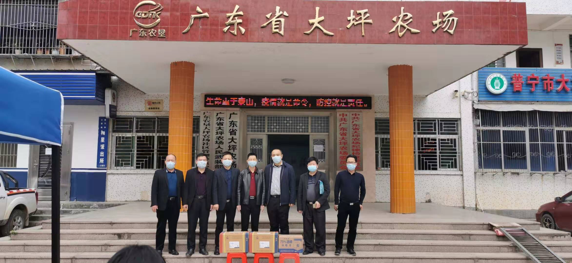 在新型冠狀病毒感染的肺炎疫情防控工作的緊要關(guān)頭,2月10日,揭陽農(nóng)墾局黨組書記朱勇一行到大坪農(nóng)場(chǎng)疫情防控一線檢查疫情防控工作、并帶來疫情防疫物資一批慰問一線工作人員。